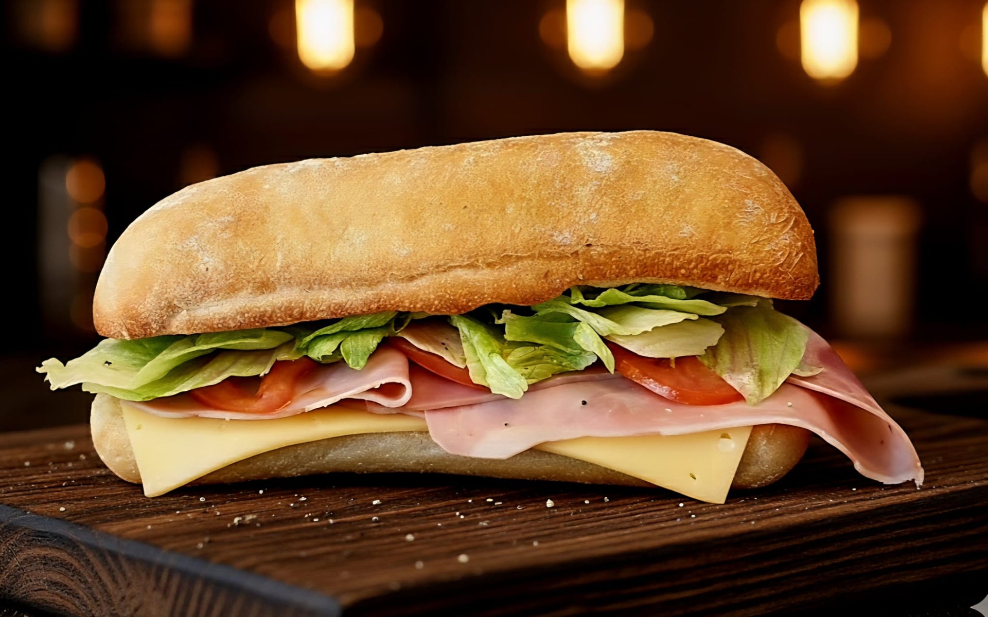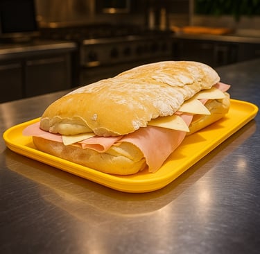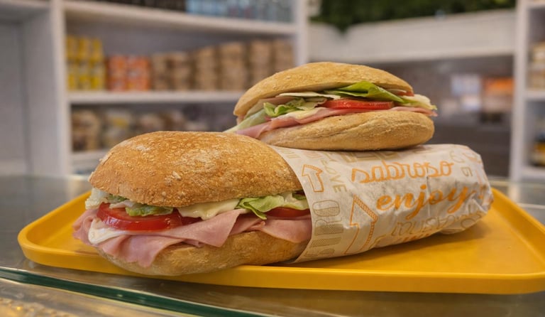 "I nostri panini in ciabatta: un classico intramontabile. Prosciutto scelto e formaggio filante in un pane croccante, personalizzabile con pomodoro fresco, insalata e la nostra salsa rosa. La semplicità che conquista il palato ad ogni morso. Scoprilo e innamorati della qualità!"