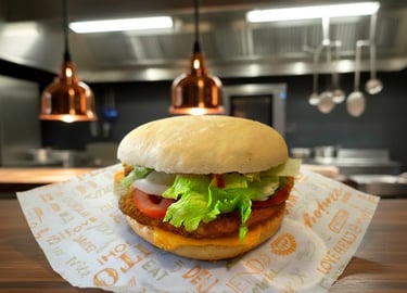 "I nostri panini in focaccia: un'esplosione di freschezza. Cotoletta di pollo croccante, cheddar fuso, pomodoro fresco e insalata, il tutto esaltato dalla nostra salsa rosa. Un mix perfetto di sapori autentici per un piacere irresistibile. Prova la nostra qualità artigianale!"