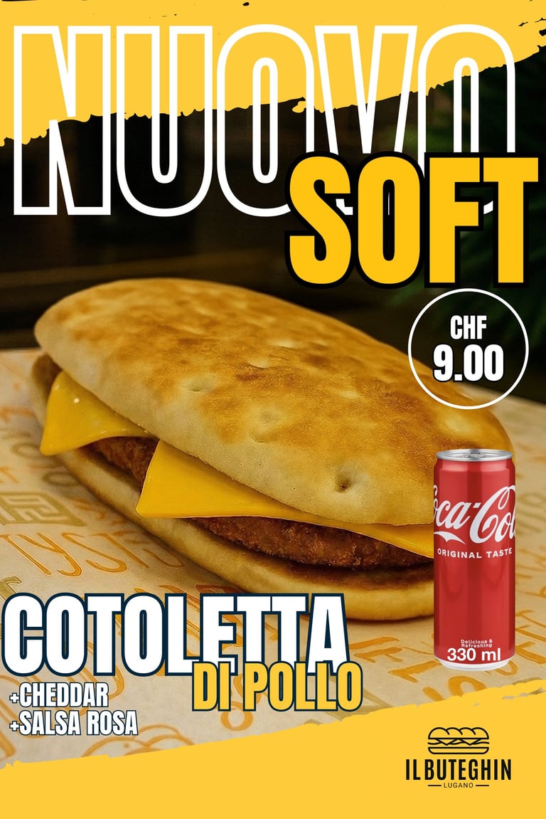 "I nostri panini alla cotoletta di pollo: un’esperienza croccante e irresistibile. Pollo dorato, cheddar fuso e l'abbraccio vellutato della nostra salsa rosa in un pane Soft unico. Il mix perfetto tra tradizione e piacere goloso. Scoprilo e lasciati conquistare da questa bontà!"